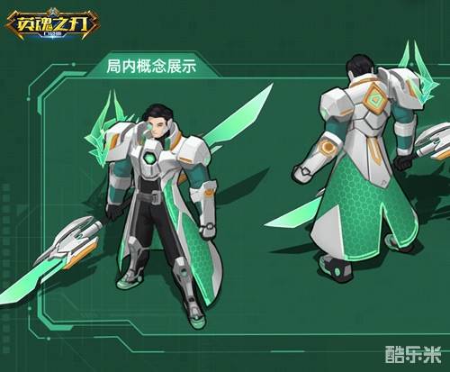 在服装设计上,选取风衣造型作为夏侯惇新皮肤的主要参考,结合行动机甲元素以及未来感材质,设计出其专属航天工作服;在装饰上,夏侯惇——揽星引航大量使用六边形这一经典科技视觉元素,呈现“青龙覆鳞”的感觉。又在人物肩甲处设计龙头能量盾,能量盾时隐时现,与服装上的龙鳞两相呼应;在配色上,青龙对应木属性,木使人联想到苍翠之色,所以采用青绿色作为夏侯惇航天造型的主色调,并以色环相邻的色彩作为辅助搭配,增加色彩层次感。