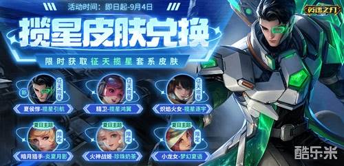 8月5日-9月4日,揽星皮肤兑换奖池更新!全新征天揽星系列皮肤夏侯惇-揽星引航、精卫-揽星鸿翼、炽焰火女-揽星逐宇、暗月猎手-炎夏月影、火神战姬-珍珠奶茶、时光守护者-冰爽柠檬茶等奖励等你来拿。其中,夏侯惇-揽星引航还享限时折扣优惠!