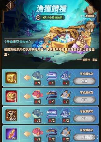 3、通过活动可以获得各种鱼获,收集对应的鱼获种类还能解锁对应的奖励。