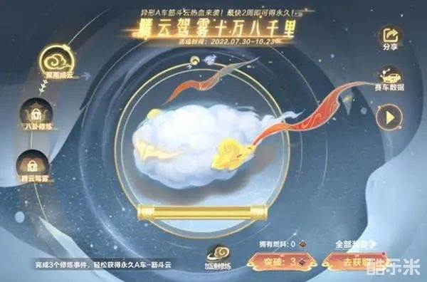 筋斗云特性:每次使用氮气,66%概率立刻获得6%集气,66%概率使当前氮气和6秒内释放的氮气最高速度+6km/h,氮气动力+6%。(特性生效期间不重复触发)