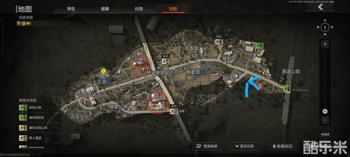 大家应该能从马厩的右边看到一个条件撤离点吧,我们撤离的主要点就靠它(猎人通道)他的撤离要求是不能携带背包