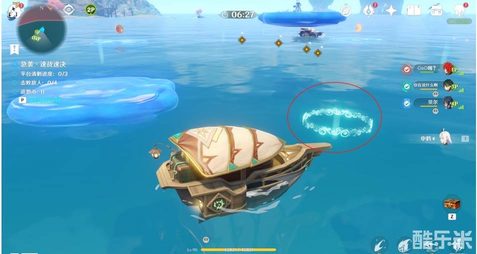 3.驾驶浪船抵达停泊点4次,海面上有个“环圈”,船经过全部“环圈”,才会产生风场,上浮空平台。“环圈”是有限的,只计算单人触发, 所以懂得吧,开到前面抢~只想拿满奖励,一个不拿都行,因为其他的分够了。