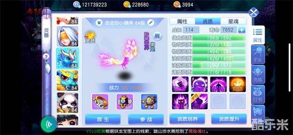 天生六技能加高资质,最关键的是主技能狩魂是连续攻击两次,唯一遗憾的是有概率触发休息,但是搭配上宝宝的灵武,我个人实测后认为他休息的概率其实是非常低的,而且天生比其他宝宝多出来一个技能,可能说面板上,没有那些极品三星优秀。但是相比较于金刚大圣之流,却是一个足以让平民玩家,立足于竞技场的宝宝。