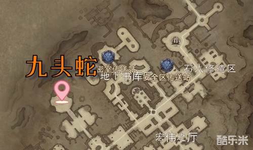 1、多头蛇的位置在【库勒的藏书馆】中,击杀之后有概率掉落传奇装备。