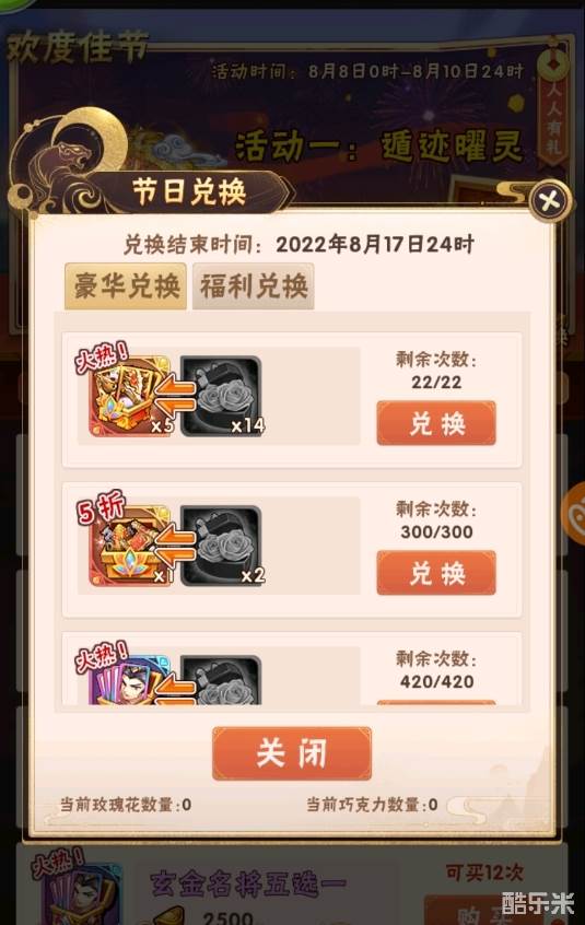 「玫瑰花」可用来兑换遁迹曜灵二选一、焰金宝物任选包等稀有资源: