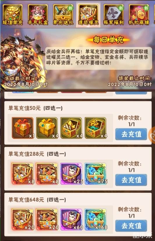 《少年三国志》2022年8月8日七夕欢庆第一轮:焰金兵符+焰金宝物