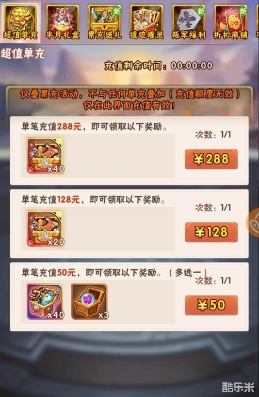 1.超值单充的充值额度计入“限时活动”中累充活动的累计充值额度;