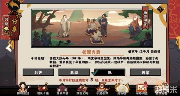 无悔华夏渔樵问答8.8答案是什么?正确的答案是哪个?选择什么是对的?渔樵问答是无悔华夏的经典日常答题玩法,在这个玩法中玩家每天都会面对一个新的历史相关的问题,很多玩家都想知道今天8月8日正确的答案是哪一个选项,下面给大家带来无悔华夏渔樵问答8.8答案详解。