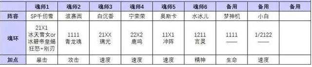 如果没有波赛西,则将上图阵容中的波赛西等位置替换为其他增伤魂师即可,例如可考虑将波赛西换为绛珠,小白替换为佘龙、鬼魅、宁风致等魂师,反正这种替代方案大家应该也见过不少,原则便是有啥用啥,啥好用啥