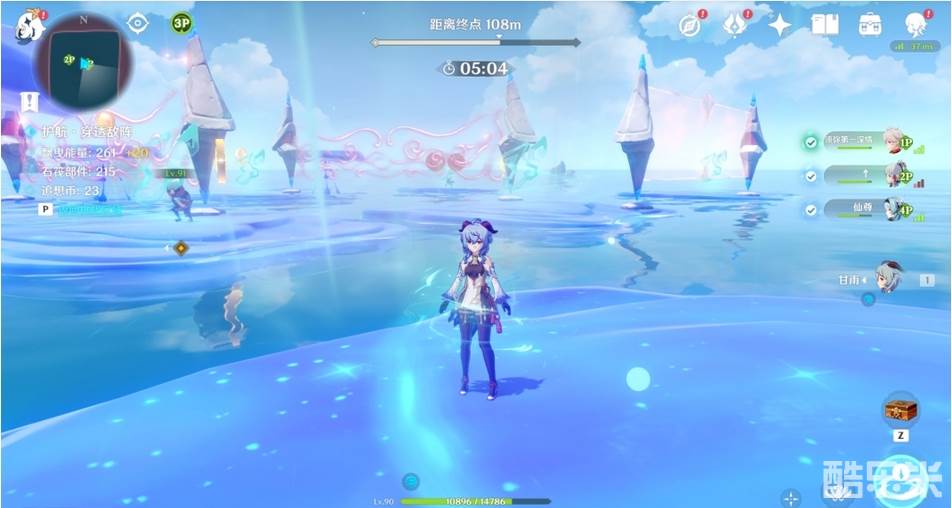 4.推荐携带甘雨角色,可以远程打掉屏障两边的石柱子,并可以打怪,一种会阻止前进,一种会伤害石筏。也可以用近战角色过去打。
