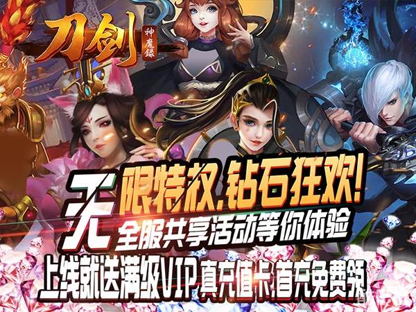 5、疯狂无限狂欢,无限钻石花不完,七日登录每天赠送充值卡,真正的钻石狂欢;