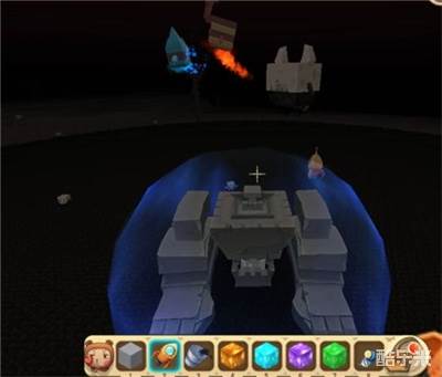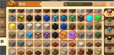 2、再准备好紫荧石块、蓝钻石块、孔雀石块,这些可以在地球或者萌眼星上找到;