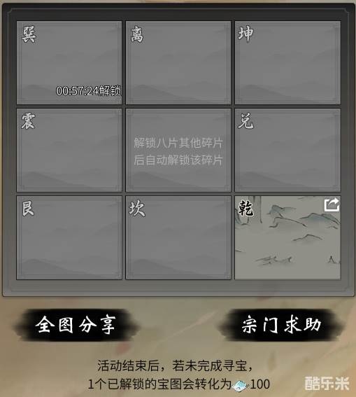 1.目前不知道是宗门常驻活动还是限时活动,总体玩法方式为解锁宝图碎片,每个小时解锁一张,也可以通过同宗门分享至宗门频道获取宝图碎片!
