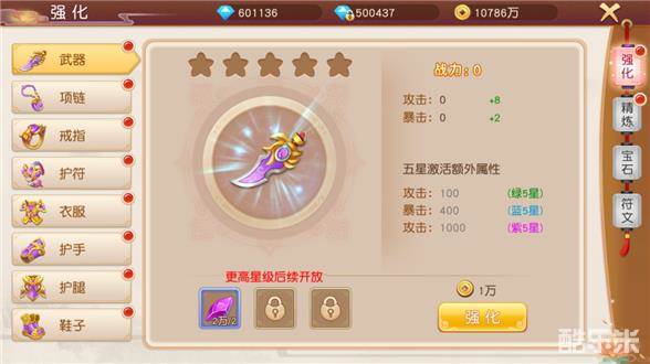 强化系统作为《天芒之神》的10大系统之一,玩家可以收集材料对装备进行强化,强化后的装备可以提升大量战力。