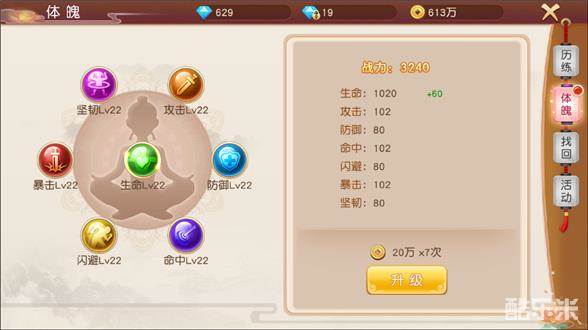 体魄同样是作用于修炼自身,提高强大的属性,如果铜币多就可以到这里来修炼升级,属性蹭蹭蹭往上涨哦。