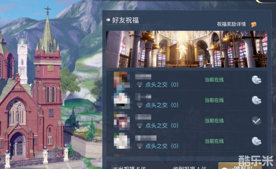教堂:玩家可以每天为好友祈福,坚持每天祈福,获得的材料会越来越好。