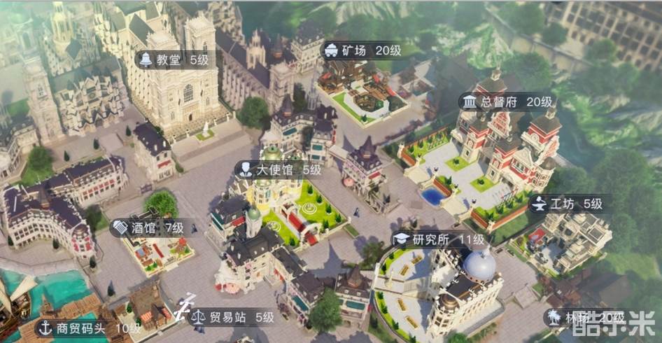 自建港中可以制作的建筑有总督府、矿场、林场、工坊、教堂、大使馆、研究所、酒馆、贸易站和商贸码头。