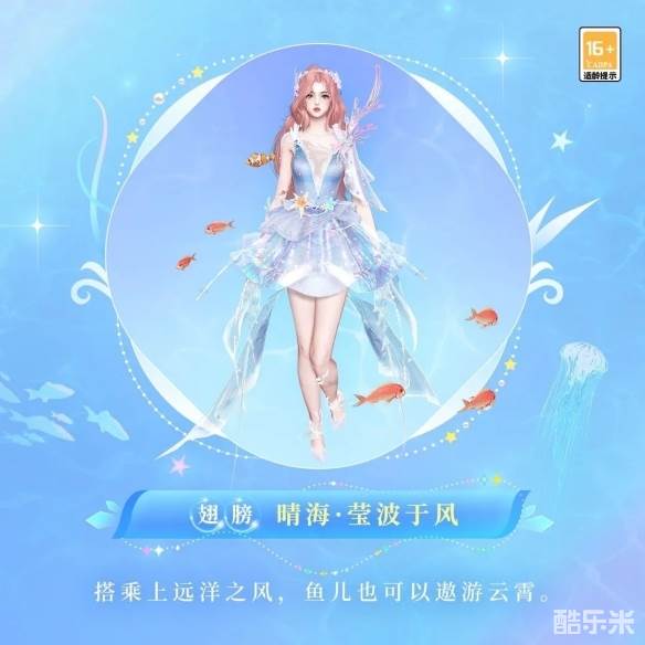 除了时装以外,本次还有头饰、悬饰、武器、以及翅膀等外观更新。头饰则是一个泡泡啾,像是海潮水托起气泡指引着冒险家们乘风破浪;悬饰和背饰有着鲸鱼外观设计,陪伴着旅人游历四方;全职业武器外观“晴海·星螺回声”的设计像是大洋倾泻出的一片繁星,满足不同职业玩家的需要。值得一提的是,冒险家们如果拥有了 “晴海·莹波于风”翅膀,飞行时就会有有一群鱼儿环绕四周,陪伴大家邀游云霄。