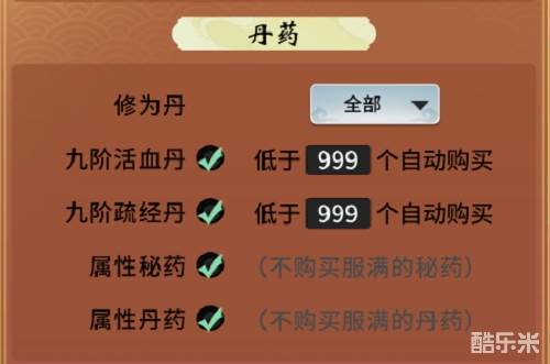 可以刷出三类丹药:修为丹、回复丹、属性秘药先说回复丹,建议常备1000+,不然秘境缺蓝少血严重影响挂机效率!其次是属性秘药刷到就买,少有溢出的情况,最后则是修为丹了,这里只要刷出来就买,蓝色以下的喂灵兽经验,氪佬第一只经验满了可以喂第二只,反正不嫌多!蓝色以上的自己吃!