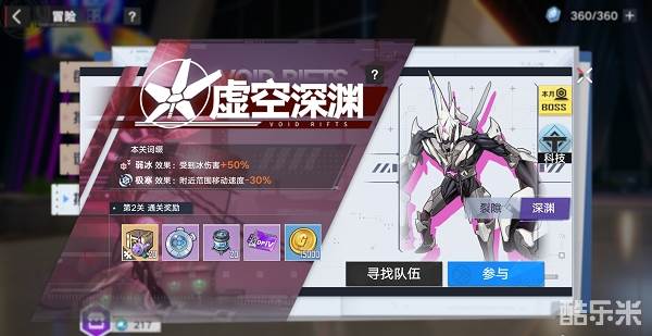 4、、虚空裂隙新增4人组队虚空深渊副本,与裂隙副本是分开的,但是玩法基本一致,不过奖励更为丰富,总共分为五关,难度高于裂隙副本,每月1号重置,刚进入会有新手引导,不要跳过哦。