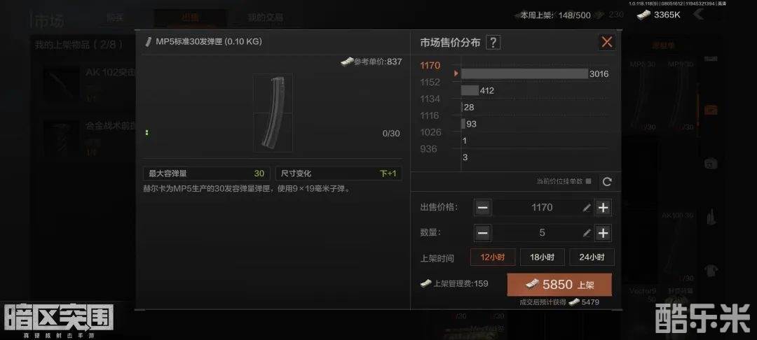 其中每个栏位最多只能寄售1把枪械,子弹的寄售上限则是90发(注意子弹有最低上架数量要求),除此之外的消耗品、武器配件、防具装备等都可以最多5件一起寄售。