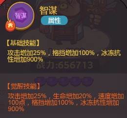 觉醒之后增加了100点速度、冰冻抗性增加900%、生命增加20%,增加了诸葛亮的坦度,速度增加了100点,打对方诸葛亮比自己觉醒低的有一定的压制。