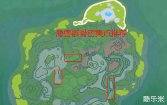 海兽骸骨在沉眠之海的海底大量分布,随处可见,当然也有几个海兽骸骨的密集采集点,大家看下图就知道了。