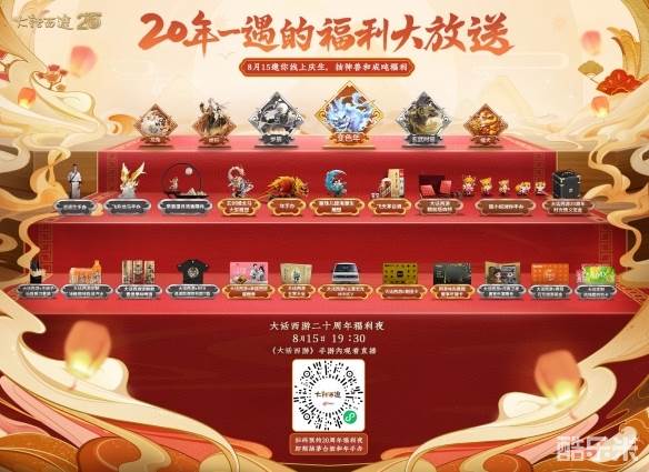 大话福利不停送!8月15日晚19:30,二十周年福利夜将在游戏内及网易CC、斗鱼、虎牙、快手、视频号等各大平台大话西游官方直播间同步准时开播,更有吨吨好礼福利相送,12大品牌联名好礼领不停,海量豪礼,只能通过游戏内直播互动领取!
