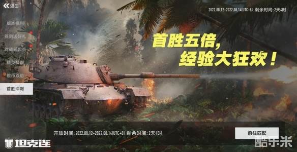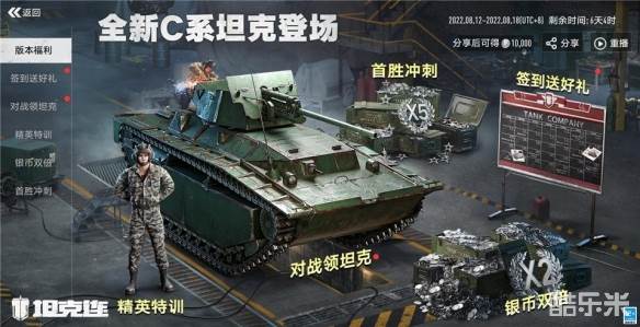 福利五:8月12日至14日,首胜五倍经验限时送达,全天候均可享受首胜个体经验5倍的巨幅加成,可以更快解锁体验C系战车!