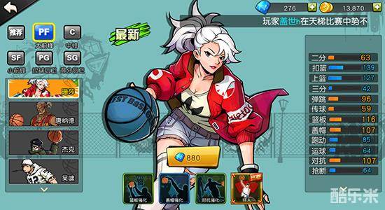 推荐理由:珊莎拥有最高的扣篮能力值(玩起来很爽),天赋技能保证了她强大的内线防守能力。