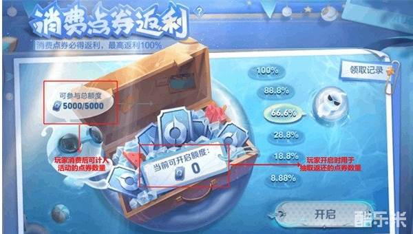 5.返利计算规则:玩家获得的点券返利数量如果不是整数,则向上取整,例如玩家消费100点券,抽到66.6%的点券返利,则玩家最终获得67点券返还。