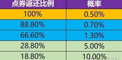 8.玩家参与活动抽取到点券返利的比例及概率公示(每个时间段抽取概率相同):
