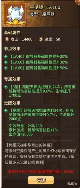 以上就是《闪烁之光》橙色魔导器星湖镜属性介绍