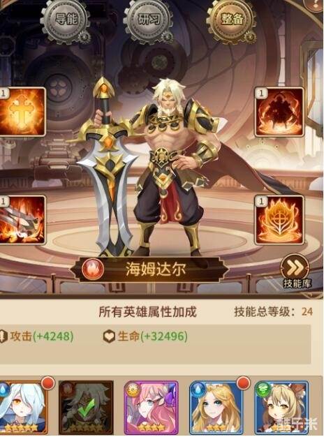技能搭配:泰坦1+海姆达尔2+亚巴顿3+海姆达尔4(或熊猫4)