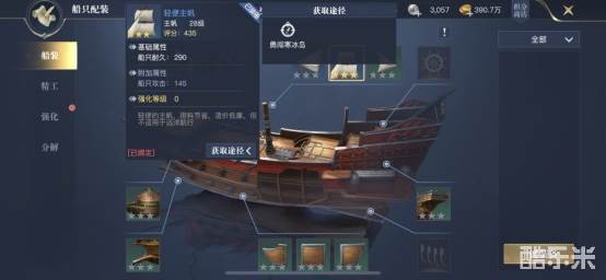 船装玩法里分为船装、精工、强化和分解四个玩法,首先看下船装。船装是给船只装备各种道具,比如船首,可以装备各种火炮、撞角和首楼,增加船只的攻击能力。在船身和船尾还可以装备对应的装备,可以提高船只的耐久、防御和各种抗性,这些属性可以大幅度提升船只的作战能力。获取方法上,可以从【勇者航路】、【勇闯寒冰岛】、【神秘梦境】等活动任务重获取。随着我们等级的提升,可以获取的船装也会越来越好,小伙伴记得及时更换新的船装。