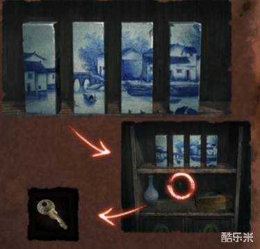 3、调整架子上的风景瓶朝向后,可以在暗中获取钥匙。