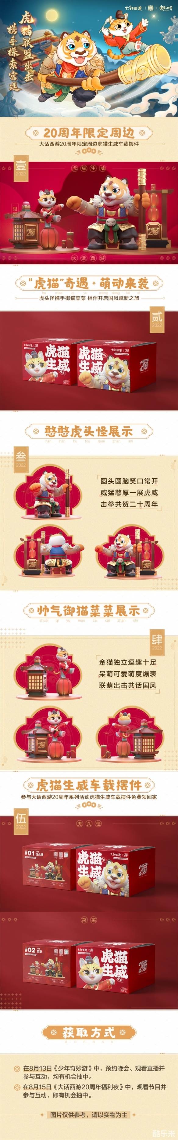 作为20周年限定精美周边,虎猫生威车载摆件将不上架售卖。兄弟们如果想将憨厚的虎头怪和高冷的菜菜领回家,就赶快准备好参与大话西游20周年系列活动吧!