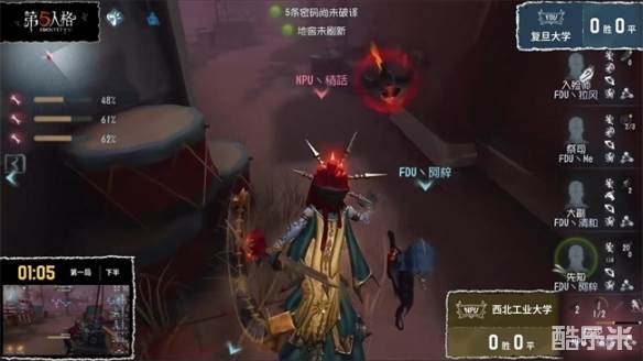 复旦大学队对阵西北工业大学队的第二局上半局,复旦大学队的求生者为了抢分,选择ban掉破轮,直面NPU丶情話的绝活摄影师。在永眠镇,摄影师开局通过换挂祭司镜像,将来不及从独栋拉走的祭司找到并上挂,而此时的密码机进度接近于无。面对这种巨大的劣势,求生者并没有放弃。FDU丶阿梓空军飞轮躲刀,救下人后开枪使得祭司拉远距离;FDU丶Me祭司天秀预判摄影师二阶回溯,反钻拉远距离,紧接着预判闪现,贴模型走极限躲掉刀气;祭司倒地后FDU丶拉风入殓师直接将其返生至中场二楼,迫使摄影师换追。入殓师被淘汰后,场上剩余三个人稳扎稳打,精准卡住摄影师回溯的CD进行破译,不给其任何机会。然而佣兵为了带离独栋的遗产机倒在墓地附近,反被挂到地下室里。此时密码机已经压好,空军与摄影师在地下室入口展开了漫长的心理博弈,最终成功救下佣兵。开门战面对没有挽留,底牌切成传送的摄影师,半状态的空军在墓地后的单板牵制到祭司将佣兵状态补满,牵制到飞轮CD冷却完毕,佣兵利用祭司的辅助洞冲门,空军凭飞轮跳地窖。整整12分钟,双方博弈拉满,监管者精准定位,意识清晰;求生者配合行云流水,环环相扣,带来了无比精彩的对局!