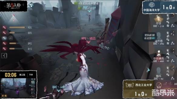 决赛西北工业大学对阵中国海洋大学的第三局下半局,NPU丶情話红蝶步步紧逼,强势四抓:红蝶开局在中场直接拿到杂技演员一刀,直接丢一个蝴蝶飞到小木屋窗前拦截到杂技演员,极其迅速地击倒杂技演员并将其挂在了地下室。后面面对牛仔的不断ob,红蝶先是利用挂件的特殊挂人动作挡住牛仔的瞄准视野,再用隔几步放下人的方法稳稳淘汰杂技演员。接下来,红蝶选择针对牛仔,利用蝴蝶和闪现,快速击倒,并不断消耗求生者的状态,最终拿下四抓,赢得了决赛的胜利!