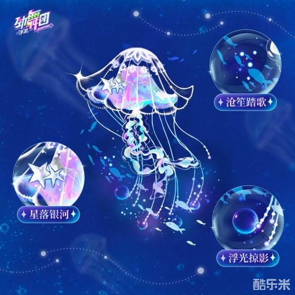 本期上新双人坐骑【蔚蓝水母】,精美绝伦的水母造型如梦似幻,摇曳飘舞的“尾巴”,尽显柔美姿态,蓝色炫光与透亮气泡映照优雅光芒,美得不可方物。双人坐骑蔚蓝水母可以在服饰工厂染色为艳丽水母、晶翠水母,染色后的蔚蓝水母仿佛绚烂绽放的海底烟花。双人坐骑蔚蓝水母还可进化为蔚蓝水母·S、艳丽水母·S、晶翠水母·S,进化后的蔚蓝水母自带仙气,是海底至美的存在。乘上蔚蓝水母,与深海精灵尽情遨游于AU世界吧!