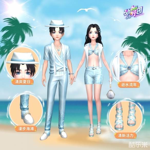 本期上新的活动服饰海蓝之夏,男女款服饰均以蓝白色为基调,温柔清秀、俏皮甜美,浪漫氛围感拉满!海蓝之夏采用淡蓝色比基尼作为内搭,配上无袖上衣,下身搭配同色系紧身短裤,清新性感又俏皮美丽,服饰整体再配上精致的手提包和坡跟凉鞋,尽显晚夏风情,浪漫无限。穿戴性感甜美的海蓝之夏,来AU世界共度晚夏派对吧!