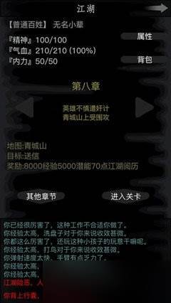 《放置江湖》的游戏分成很多个章节,当我们在通过这个游戏里面的关卡的时间,我们也是会获得通关的奖励。但是有些章节会设置上一些隐藏的情节,我们在完成关卡的全部内容的同时也需要完成这些被隐藏起来的内容才算是真正的通关,其中游戏里面的第八章就采用了这个模式。因此在这里让我们看一下这个关卡的通过方式吧。