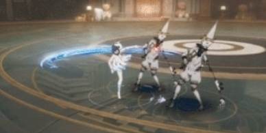 [轻步行进]-处于独幕跃痕状态时,消耗信号球可使出轻步行进,造成冰属性伤害,轻步行进期间无敌并牵引怪物。若是成功闪避攻击进入独幕跃痕状态时,消耗信号球将使出更强力的轻步行进。