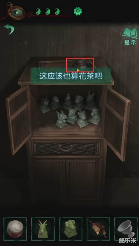 2、在轿子旁,镜子处的兽口中可以得到茶碗。