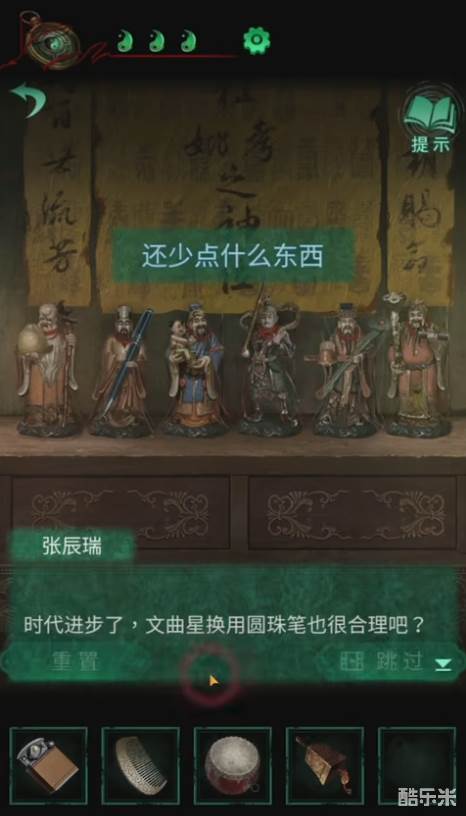 9、点击上面的桌面,可以看到几个神仙雕像,将圆珠笔放在文曲星上。