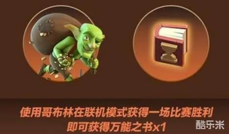 挑战1:使用哥布林在联机模式获得一场比赛胜利即可获得万能之书x1