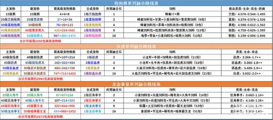抱抱熊系列、白虎系列、龙血拳皇系列融合路线表