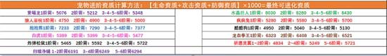 宠物进阶资质计算方法:(生命资质+攻击资质+防御资质)乘以1000=最终可进化资质