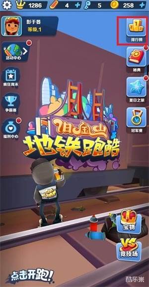 1、在地铁跑酷游戏首页界面中,点击右上角的【排行榜】进入到其中;