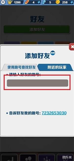 4、接着在此界面就可以输入好友的跑号,就可以搜索到好友;